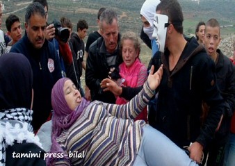 Nariman Tamimi, a thirty-eight-year-old woman from the village, was shot in the thigh at close range with a .22 bullet. She was taken away for medical treatment, where she underwent surgery, and currently remains in hospital.